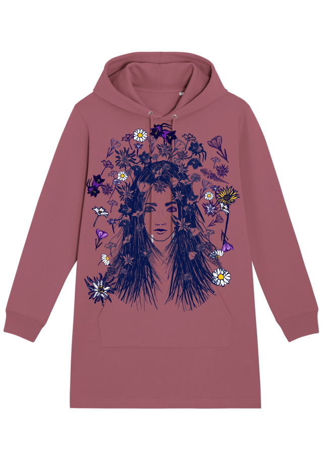 Teplé mikinové šaty sú veľmi príjemne na nosenie. Všetky tričká a šaty sú ručne tlačené technikou sieťotlače alebo digitálnou tlačou. Motívy sú originálmi. Môže sa stať, že motív má iný odtieň farby, alebo malý nedostatok, čo je spôsobené práve tým, že každé tričko je ručne tlačené, to znamená, každé je originál.